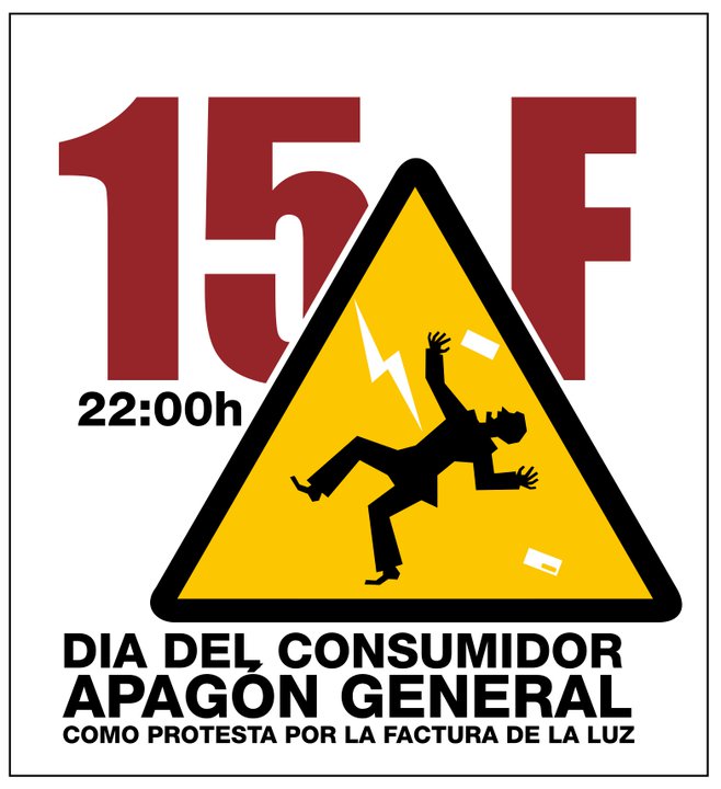 Recordaos que hoy día 15 de febrero está convocado un apagón generalizado. Será en señal de protesta por la abusiva subida en sus tarifas que las electricas llevan a cabo.