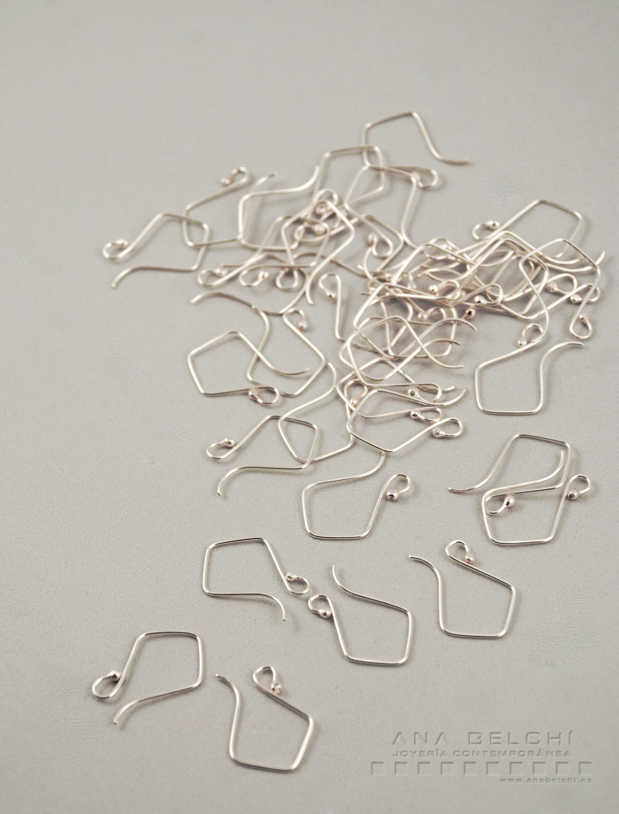 Aquí tenemos unos ganchos de pendientes que acabo de terminar. Están realizados íntegramente a mano en plata de ley.