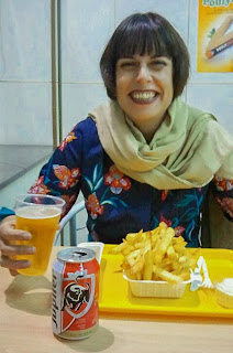 Más besos y abrazos y por fin la esperada cervecita y sus patatas fritas con mayonesa.
