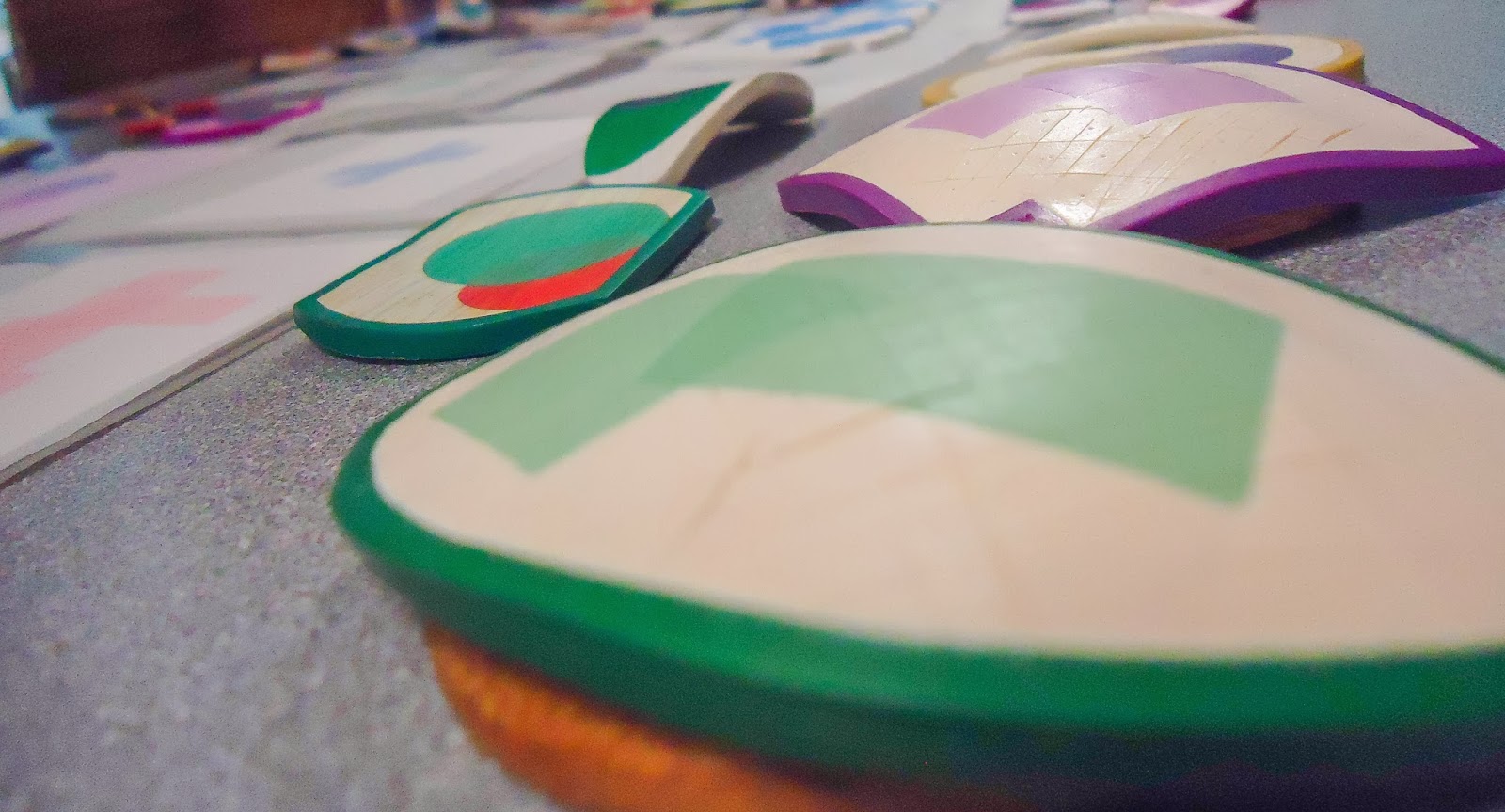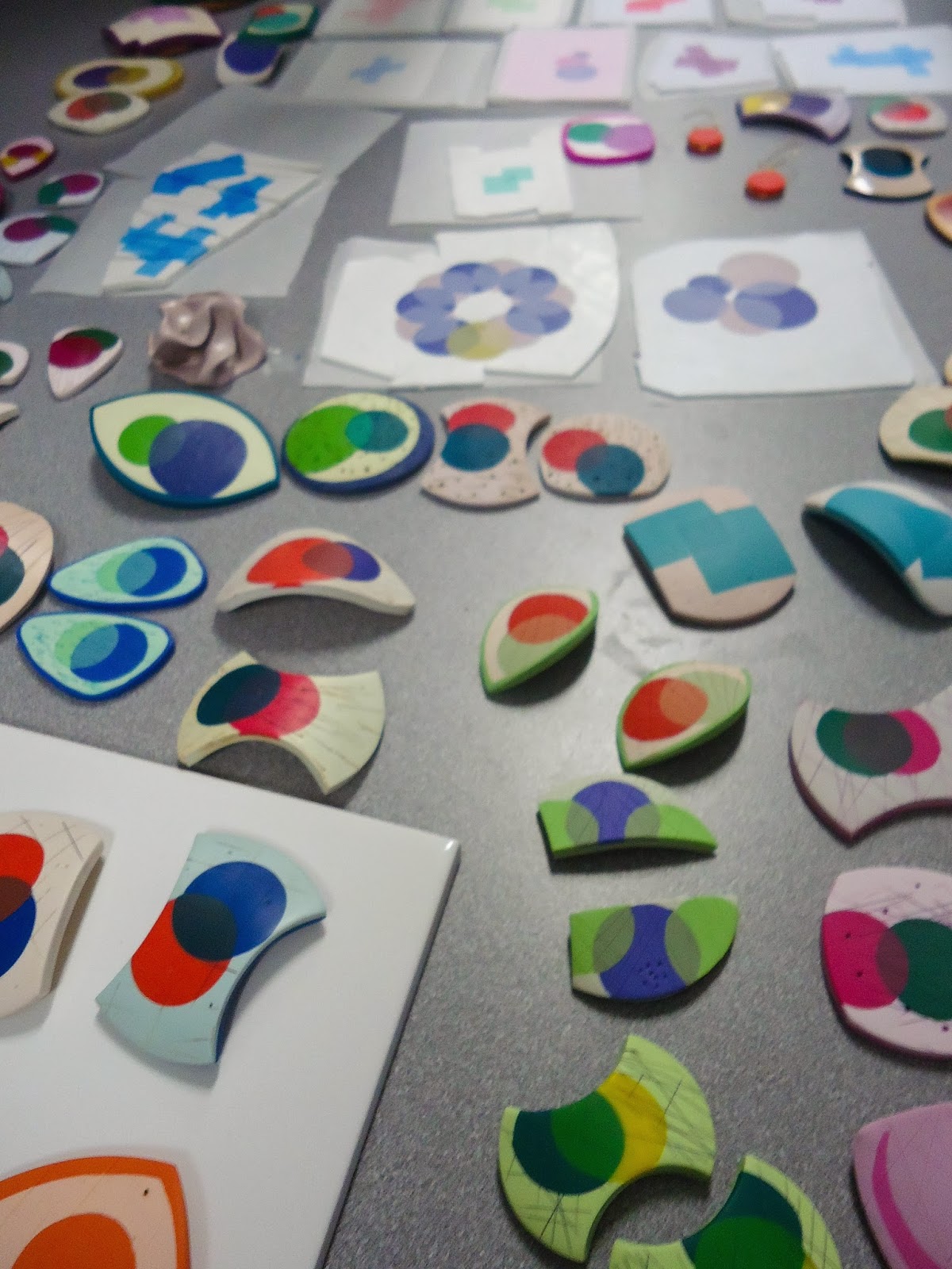 El sábado por la mañana bien temprano comenzamos a jugar con el color y con las transparencias. Colores distintos que se superponen, círculos, curvas… numerosas piezas salieron de nuestras manos.