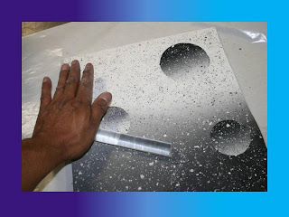 Circle cutters of different sizes were used to trade circles from different areas. This sheet was then cured at 300 degrees F for 1 hour.