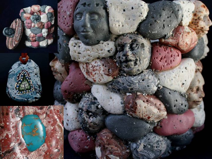 Sólo he hecho una docena de degradados desde que empecé a trabajar con arcilla polimérica hace unos diez años. Supongo que es por falta de paciencia y no dedicar el tiempo necesario para aprender lo que podría crear con ellos. Mi enfoque hacia la arcilla polimérica es novedosa y diferente. Creo que la innovadora técnica de Judith Skinner es, en el mundo de la arcilla polimérica, ‘la cosa más grande que se ha inventado desde el pan en rodajas’. Como homenaje, he decidido utilizar mis ‘Skinner Blend’ como fondo en casi la totalidad de las fotografías mostradas.