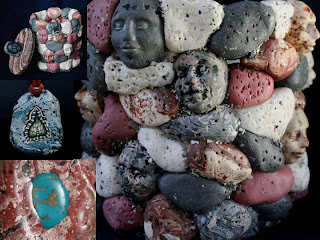 Flash cured particles incorporated in faux stones.