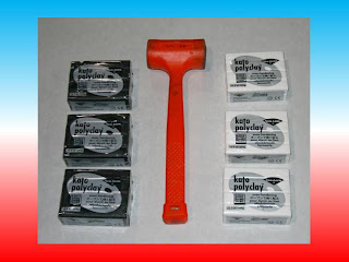 Working with polymer clay should be fun and a "no sweat" endeavor. Thank you "Big Red" and your 50 tons of pressure. I sandwiched the clay bars between two metal bars and with the ease of a few pumps smashed them down to a workable thickness as shown in the photo below.