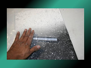 Flash cured particles are then sprinkled over the Skinner Blend sheet and imbedded with a roller.